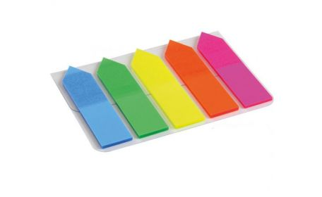 Клеевые закладки . Набор пластиковых самоклеющихся цветных «флажков». 5 цветов х 25 штук. Размер 12 х 45 мм.