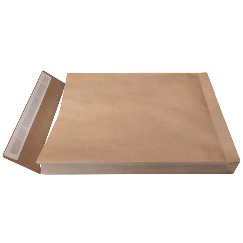 Конверт-пакет формата С4 (229×324 мм) выполнен из крафт-бумаги плотностью 130 г/кв.м. Имеет клеевое нанесение типа стрип (отрывная силиконовая лента). Боковое и донное расширение — 40 мм. Предназначен для почтовых отправлений различной многостраничной документации и объемных вложений.