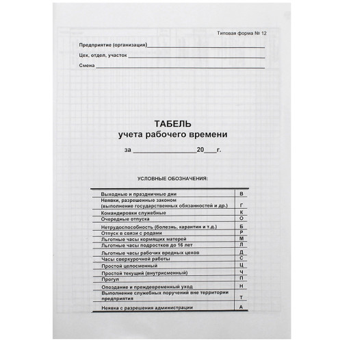 Табель учета рабочего времени А3 в разложенном виде, А4 в сложеноом, 1 лист